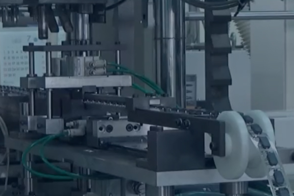 竪型成形機を用いたフープインサート成形加工