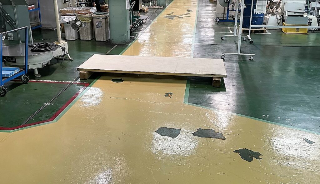 一年も経つと台車で金型を移動したりと結構酷使するのでペンキも剥がれますし、汚れも目立ってきます。