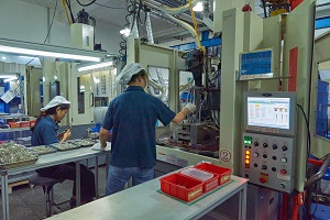 東莞市寮歩鎮でプレス機45t~160tを中心におよそ50台で順送フープ品からバラ品の精密部品を生産しております。